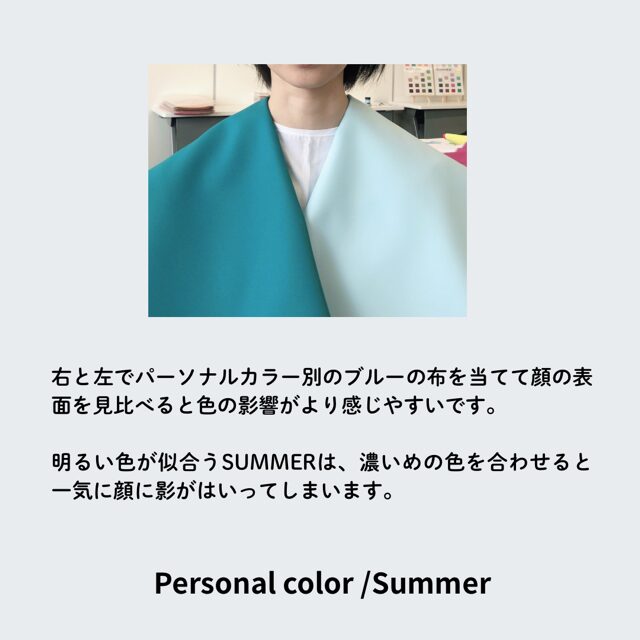 「自分に似合う色がわからない」とのお悩みをお持ちでしたが、診断の結果はSUMMERタイプ。