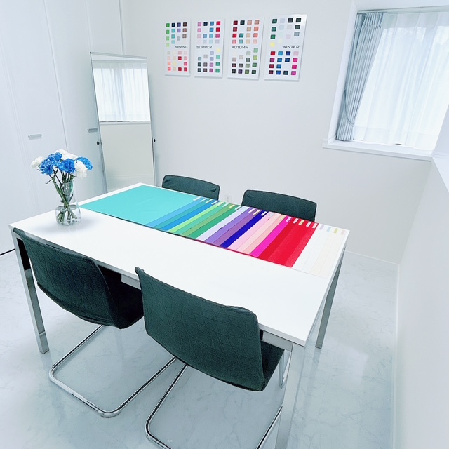 ▪️サロンでは、正確なカラー診断を提供するためサロンを白×ブルーグレーで統一。